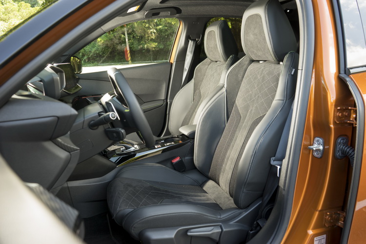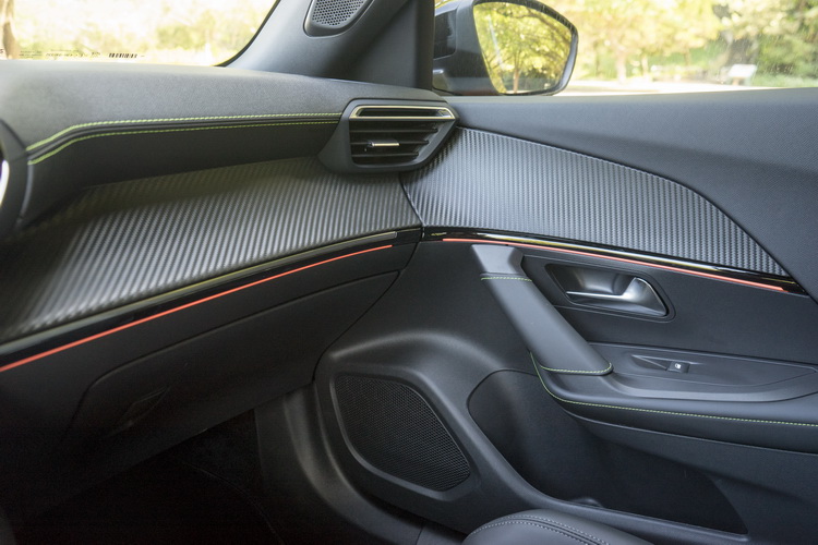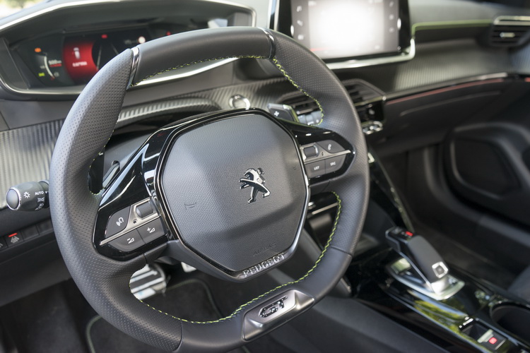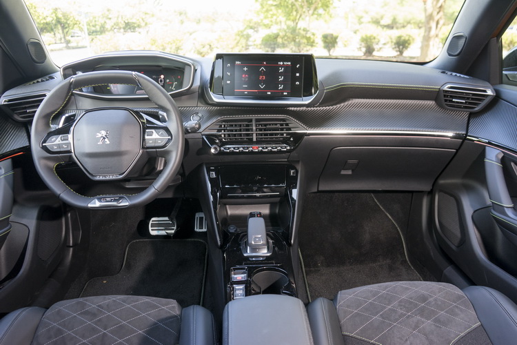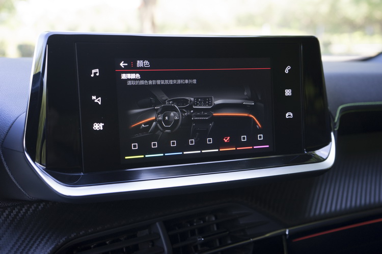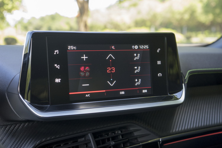 中控台上則是配備七吋全彩觸控螢幕,有著明顯面朝駕駛者的角度,介面呈現直覺清爽,也支援Apple Car Play與Android Auto兩大智慧手機整合操作平台。其他像小盤徑且上下緣都是平底的方向盤、鋼琴鍵盤排列造型的控台按鍵、電傳線控的排檔桿等也都是i-Cockpit概念下的內裝細節元素,在思考上都以操作的直覺性作為主要設計考量同時又不失美感。