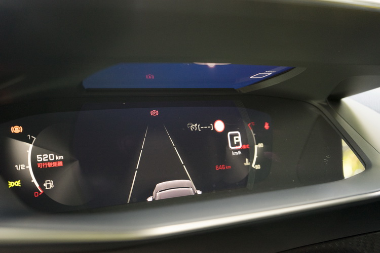 它是採雙層結構,也就是在一般儀錶板位置上方遮光板處還有一層投影面板,你會發現顯示的資訊圖案/文字有立體感,好像懸浮在空中一樣,各項顯示物件之間也有者距離感。這樣在顯示某些行車資訊時會比起2D平面的顯示顯示更直覺易懂;儀錶提供了駕駛/二組自訂/儀錶/精簡等多種顯示模式。資訊立體顯示又不用另外戴什麼特殊的眼鏡,直接裸眼閱讀即可,當然也給人比較酷炫和科技的感覺。