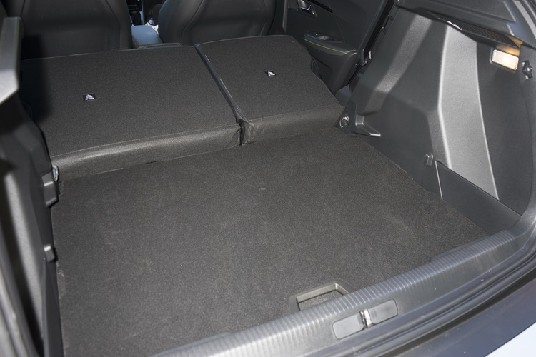 空間部分以其車身尺碼來說表現不差,前座頭部(以165cm左右乘客乘坐來說距車頂約2.5個拳頭)與腿部空間算是充裕。後座乘客小腿仍有一點向前伸的空間但雙腿交疊小腿空間就會較侷促。行李廂在標準狀態下收納容量為405公升,放倒後座椅背後可以擴增至1467公升。行李廂的車底隔板有二段放置位置的設計,較高的一段可以讓行李箱與放倒後座後的地板高度齊平,低一段位置可讓行李廂空間高度多增幾公分,不過差異很有限。