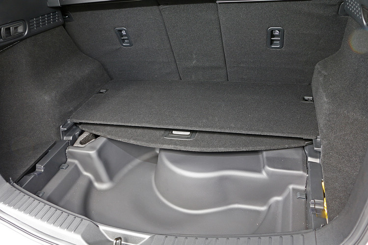 ![]() ▲Signature車身外部側裙和護板都採用同色烤漆處理,藉以強調都會休旅的時尚高級感,和照片右邊的Sport Edition車型相比,明顯展現出不同的風格。針對不同的車型,CX-5透過細節上的差異來打造不同的外觀風格,像是Carbon Edition走的是古典個性路線,Premium訴求的是成熟驚豔設計,Sport Edition突顯的是熱血駕馭氛圍。至於本次試駕的Signature則是著重在強調都會休旅的時尚高級感,為了減少SUV的粗獷味,車身外部側裙和護板都採用同色烤漆處理來提高精緻度。 ![]() ▲Hands-Free感應式電動尾門功能,偵測靈敏度相當好,增加了實用便利性。![]() ▲兩片式行李廂隔板正反面都可用,其中一面還有防水設計,底下並提供了隱藏置物空間。