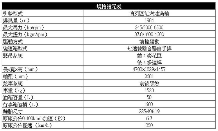 而在行路感上,雖然為了擁有一定的運動操控能力所以懸吊避震阻尼一定有相當程度的硬調,但在經過一些品質較差的路面時其實車子的彈跳感並不會太過明顯,避震器伸展側阻尼設定也做到相當程度的衝擊吸收來確保乘坐舒適性。