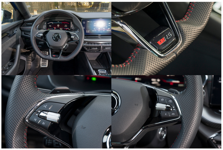 在轉向上,Octavia RS搭載漸進式轉向系統,高速行駛或一般小角度轉向的時候轉向比設定比較一般,確保穩定安全的轉向。但當方向盤轉動角度大於120度時系統會視為是停車、移車這類動作,此時相對於Octavia左右死點需轉2.7圈,Octavia RS只要轉2.13圈就會比較好操作。