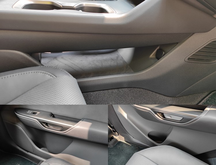 乘坐空間上,頭部空間因為壓低車高的設計表現算是普通,前排座椅座墊至車頂距離約91公分,後排座椅座墊至車頂距離98公分,但腿部空間表現就很「電動車」了,尤其是後座腿部空間,後座椅墊距前座椅背的距離範圍為21-47公分,以筆者163公分身高來說將前座調整至適當位置後坐在後座時膝蓋與前座有四個多拳頭的距離,翹個二郎腿腳往前伸都還可以。