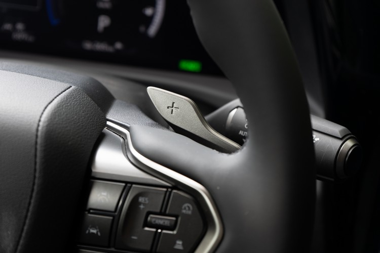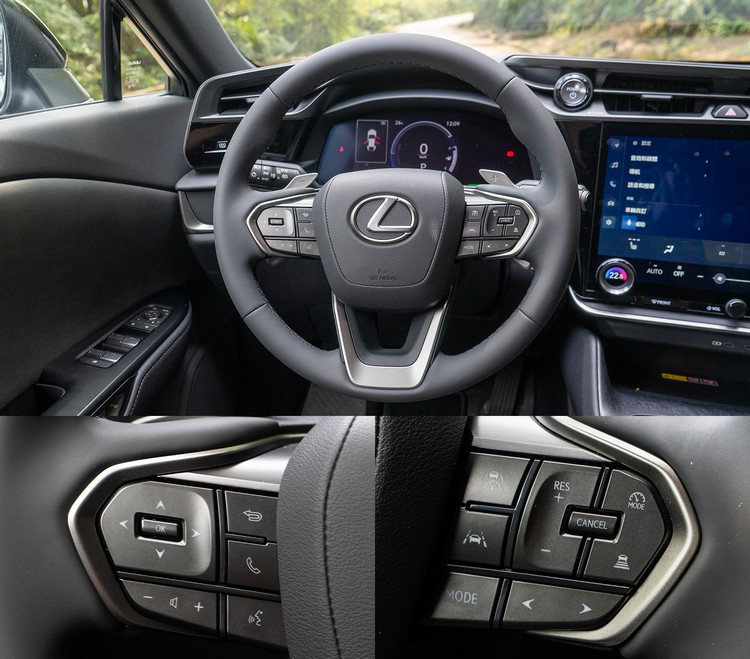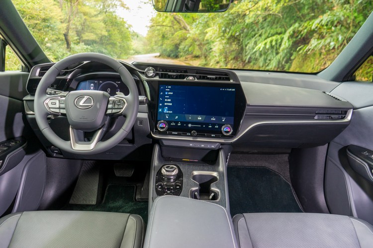 就豪華進口品牌而言,LEXUS的純電車進入市場比對手晚了一些(UX 300e是直接套用引擎車底盤,不算正規/成熟的純電車產品),而在「後發」的背景之下,RZ也有帶來一些有趣的科技與設計,例如造型像飛行器控制器的非圓形電傳線控方向盤、ASC聲浪控制系統、特殊門內飾板照明等,可惜我們這次在新車正式國內發表前的試駕拿到的應該是較入門的車型,所以這些配備或是更高質感的材質用料都看不到。