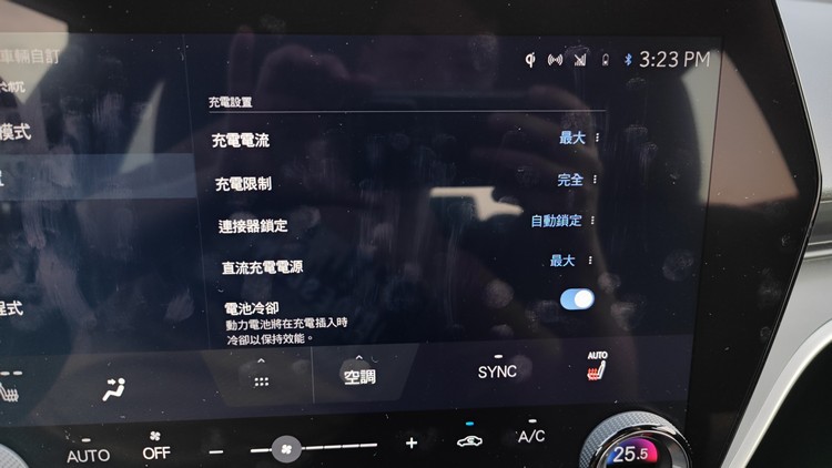 車上的DC直流快充充電孔是CCS1規格,最大支援150kW功率的充電系統,約30分鐘可將電量至充電警示狀態充至80%。這次試駕我們剛拿到車子的時候電量是滿格(12格),尚可行駛里程數字為312公里。我們試駕行程前半段以市區道路與連續上下坡道的山路為主,駕駛模式則是Normal與Sport為主,跑53公里就掉了三格,算起來若照此模式跑完所有電量約只可跑200多公里。