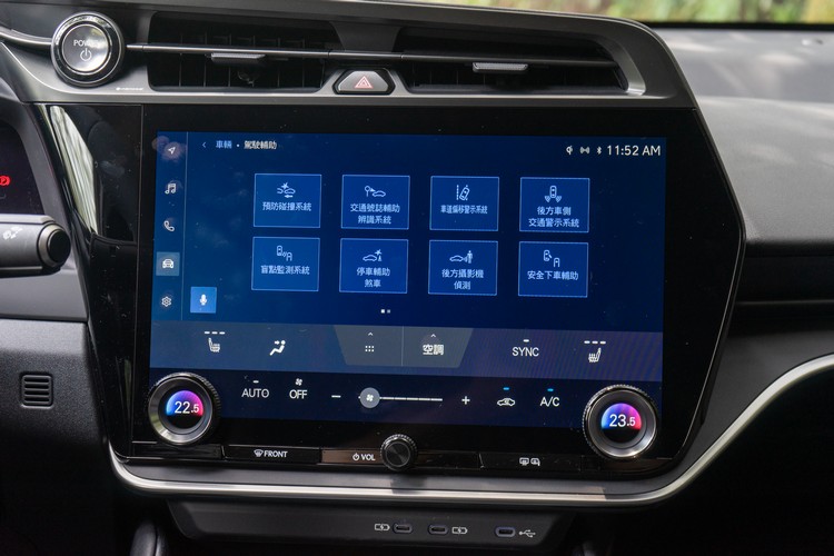中控台上的多功能資訊整合系統則是採用14吋觸控螢幕,所以畫面與功能圖示也夠大,看得夠清楚舒服,螢幕觸控的靈敏度可以調整,即使冬天戴著手套也還是可以順利操作。系統支援無線Apple CarPlay與有線Android Auto。平常開車時最常調整的空調系統則放在畫面下緣位置搭配觸控按鈕,使用起來也很支援。