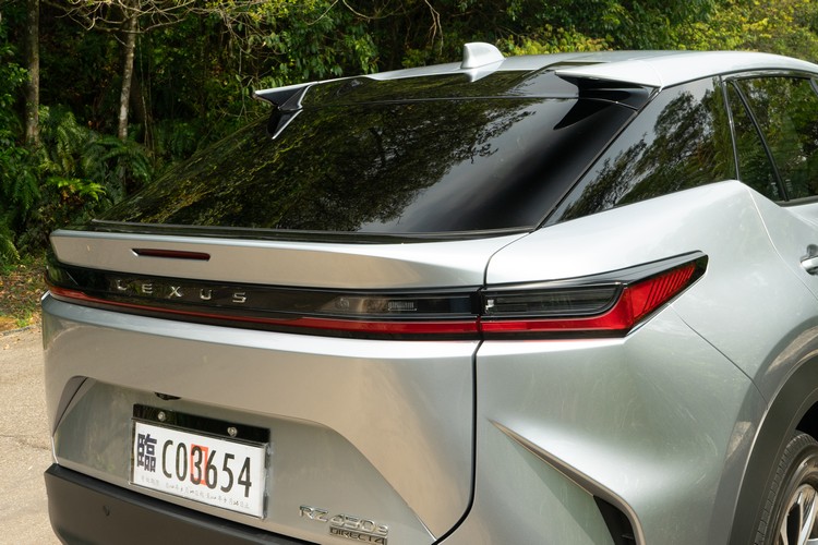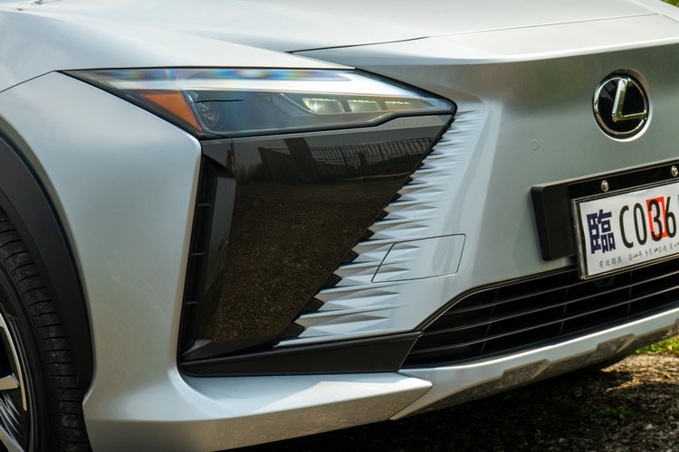 就輪廓比例來說,RZ 450e的車身相當修長(車長比b4ZX多了約100mm車高卻沒有比較高),長車頭、短車尾,且車頭位置較低(電動車比較能做到這樣)車輪也蠻向四個角落去配置,給人寬而低趴的印象。由於電動車沒水箱不需水箱罩,所以車廠也做了電動車專用的Spindle Body設計(在國內上市不久的五代RX上是首次見到),從頭燈設計到保險桿的黑色塗裝都有將觀賞車視線向中央紡錘造型集中的效果,如果紡錘造型的邊緣能發光就更炫了。