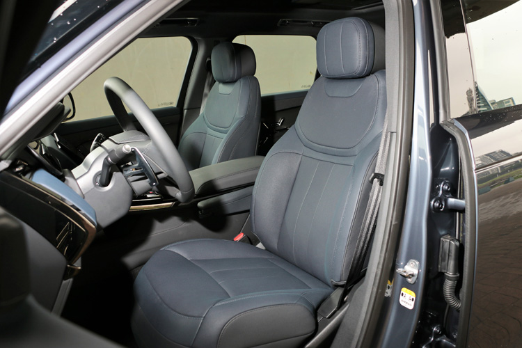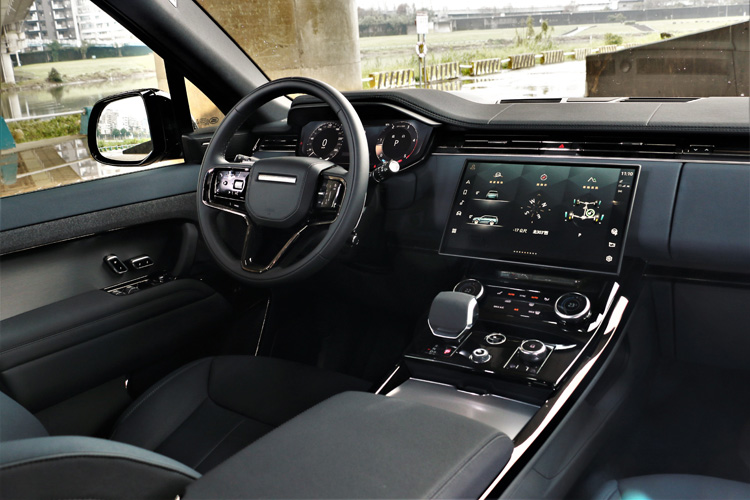 車內設計以駕駛者為導向,相當符合Sport該有的運動氣息,居高臨下的駕駛座視野,利用掌控車身接近五米的龐然大物。駕駛者前方儀錶板和中控台娛樂螢幕使用13.7吋和13.1吋螢幕,儀錶板能切換多種呈現介面,娛樂螢幕搭載最新 Pivi Pro 資訊娛樂系統並支援行動裝置無線連結功能。寬闊的懸浮式中央鞍座集成冷氣介面、Terrain Response 2 進階全地形反應系統和排檔等重要車輛控制元件。Range Rover Sport價格比起老大哥Range Rover相對便宜,但是在內裝用料一點也不馬虎,幾乎使用相同等級的皮革、飾板作為鋪成,只是在Range Rover Sport更多了幾分的運動氣息。