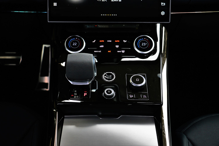 ▲寬闊的懸浮式中央鞍座集成冷氣介面、Terrain Response 2 進階全地形反應系統和排檔等重要車輛控制元件。
