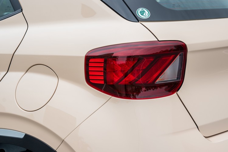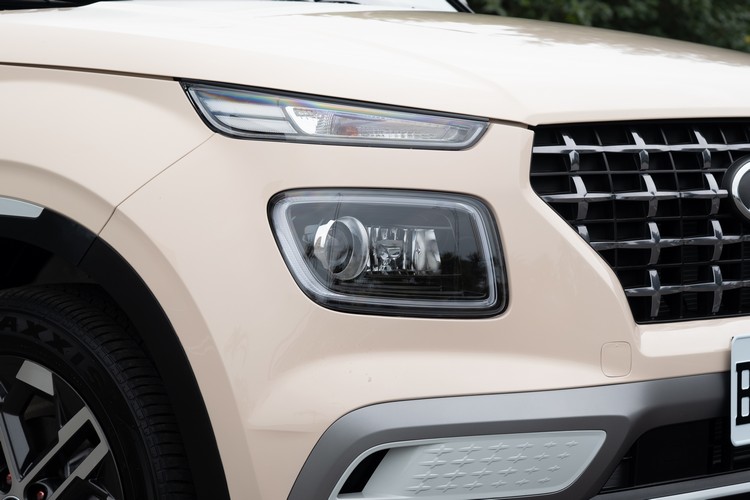 新Venue車頭部分標配了LED頭燈來搭配環狀的LED日行燈(GLB與GLC車型),水箱罩則從過去的三角星綴造型則改為十字鍍鉻造型來與原廠在海外其他地區銷售的車型統一化。所配17吋鋁圈也改為五輻幾何雙色切削造型,看起來更為銳利陽剛。