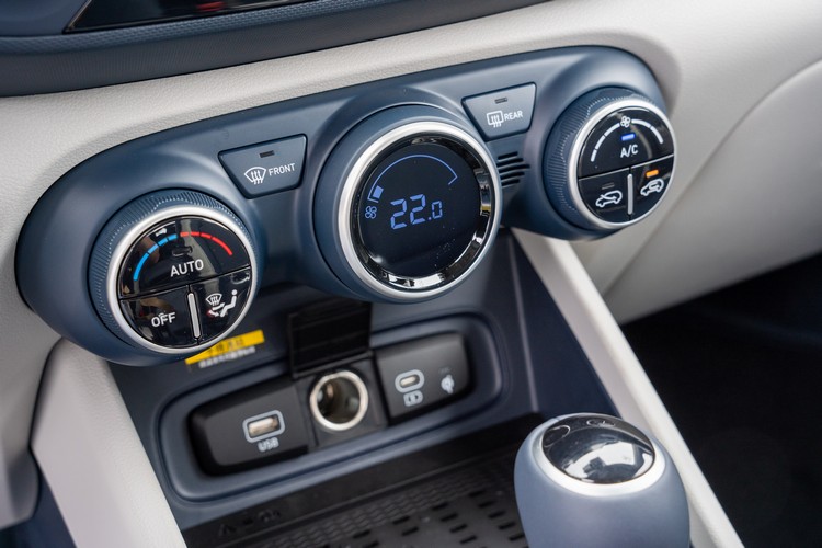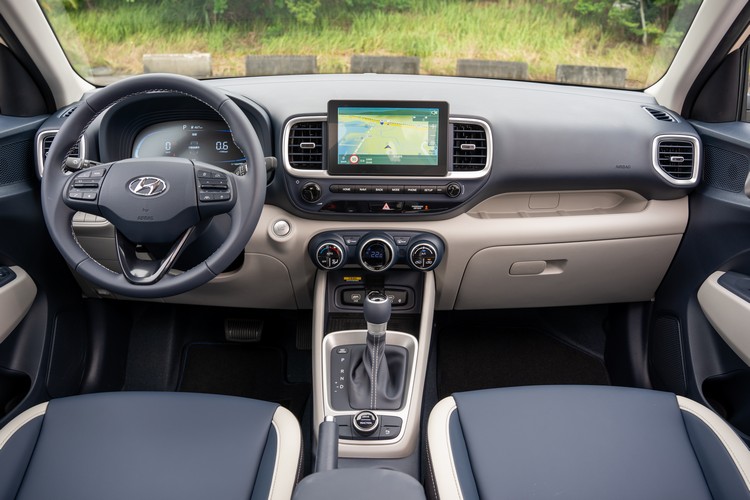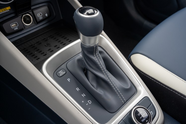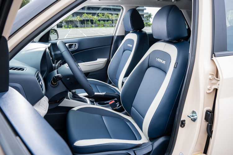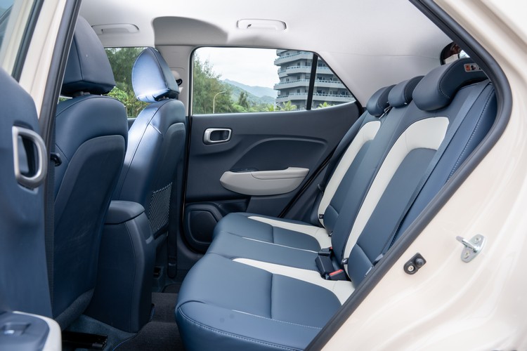 Venue一向很會玩外觀車色的雙色調,但在內裝上都一直是以黑色為主調,限定版車型才會在座椅上有不同設計。這次新Venue就正式把雙色調玩進車內,GLB、GLC二車型都是標配藍、灰雙色調內裝,包含前方控台、座椅、車門內側...等。新雙色一上的確給人質感UP的感覺,室內氣氛也變得比較開朗活潑。只是不知道若車子外裝色與內裝色不match的狀況大家是否接受。以我們這次的試駕車為例,車色是淺棕(珍珠奶茶色)/深棕的暖色系,進到車內就變成冷色系也是蠻特別的。