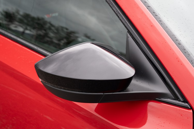 RS車型則因為其運動化屬性而以專屬的黑化細節做為區別,包括水箱罩、前保桿、後視鏡外殼、窗框、尾翼、黑色行李架、後保桿導流翼、左右單出跑車式排氣尾管等,車頭車尾也都有新的RS logo來強調身份。RS專屬的19吋輪圈內則是紅色的煞車卡鉗。