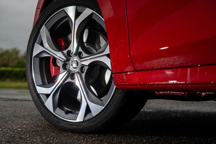 在轉向反應上由於方向盤左右死點的轉動圈數是2.13圈,比Octavia標準車型的2.70圈少些,配上可變轉向比的轉向系統,當你方向盤轉向角度較大時(車廠提供的數據是120度),車子轉向角度會比平常更大,所以在過大角度急彎時會更加從容。懸吊因應車子運動化屬性在避震阻尼設定上自然不會軟,但行路時車身跳動感在可接受範圍內,乘坐舒適性還是有一定水準。