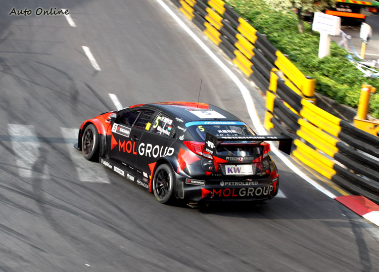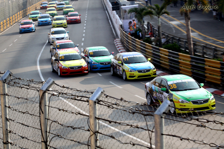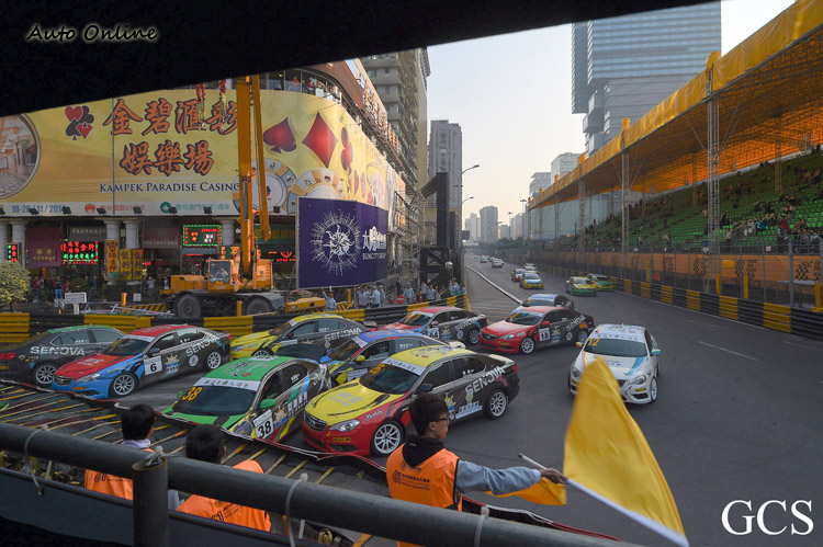 台灣車手力拼澳門大賽頒獎台![]() ▲代表台灣出賽華夏盃15號車江榕豪,決賽因為煞車出現問題,最後以11名完賽。這次賽程中,台灣車手參與人數最多的就是華夏賽車大獎賽,澳門格蘭披治大賽車也是華夏盃的最終站。五位台灣人參賽,有9號車鄒定甫、11號車楊孟樵、15號車江榕豪、78號車周哲男以及91號車施世偉。華夏盃車輛統一規定北汽紳寶的D70改裝賽車,引擎配置B205R的2.0升渦輪增壓引擎,換裝Cosworth的引擎電腦控制單元與6速序列式手排,可輸出最大馬力250ps以及290Nm最大扭力。底盤部分,改裝Ohlins競技避震器、Nashin 4活塞煞車卡鉗;為符合安全規則,內裝搭配全車多點式的防滾籠、OMP賽車座椅、6點式安全帶、防護網以及賽車用滅火器等。華夏盃之前的幾站,有車手反應比賽公平性,所以賽會更改規則,分站賽事賽前會以抽籤來決定車輛與電腦,觀眾可從引擎蓋的顏色來分辨國家,藍色的引擎蓋就代表台灣。 ![]() ▲華夏盃前十輛車時間都在一秒差之內,競爭激烈可想而知。![]() ▲華夏盃決賽第一圈發生嚴重事故,讓11號車楊孟樵無緣站上頒獎台。