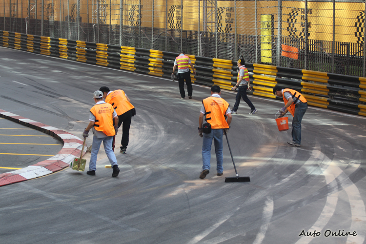 ![]() ▲重要彎道都有大型吊車快速排除事故,看出澳門格蘭披治大賽車嚴謹。![]() ▲Marshal工作很重要,負責清潔場地、舉旗號等,確保比賽能順利進行。