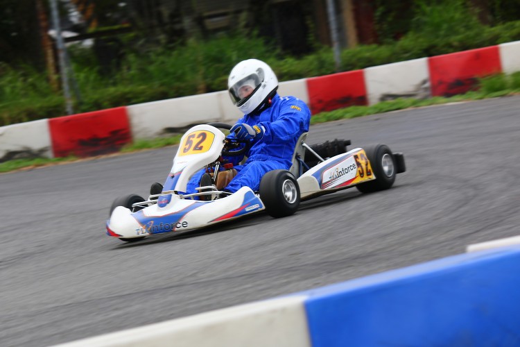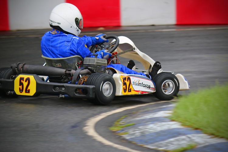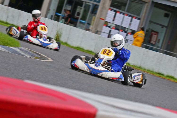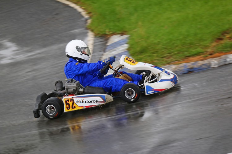 其實這也是筆者首次以雨胎進行卡丁車比賽,在濕地賽道裡,擁有排水溝紋且胎植更軟的雨胎依舊能夠緊黏地面,不過由於部分車手尚未熟悉雨胎的特性,因此複賽中個人名次再度上升幾個位子,最終以第七名成績作收。然而到了最終的決賽,天氣不只開始放晴,地面上的積水與潮濕也迅速消退,筆者車上這套先前已使用過的雨胎開始衰退快速,隨著漸漸邁向總數16圈決賽的終點線,我的52號車在入彎時開始轉向不足越來越嚴重,一旦出彎車尾也漸漸難以掌控,直到最後幾圈,筆者往往必須刻意採取滑胎的方式過彎,才能勉力控制循跡路線,最終僅能以第八的名次,完成這場令人印象深刻而且經驗絕對難得的刺激比賽。