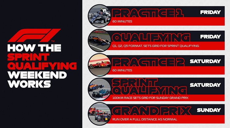 ![]() 目前一級方程式的賽制採週五兩個練習時段,週六為一個練習和排位賽,排位賽有三個回合,每一回合會淘汰稅後五名,直到第三回合剩下的十個名額做出最後排序,接下來就是禮拜天的正賽。新賽制則會在週六下午進行100公里的衝刺賽,大約25分鐘左右,衝刺賽的排名會成為週日正賽的開賽順序。為了要讓大家能積極地投入新規則衝刺賽,本場比賽的前三名都會額外增加積分,第一名為3分,第二名為2分,第三名則為1分。