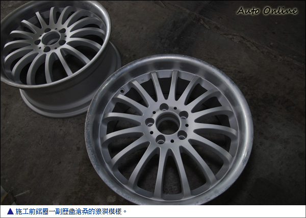 ![]() 以往,若有遇到鋁圈出現上述狀況,多數消費者多會選擇更換鋁圈的方式來處理。隨著輪圈改裝產業的發展迅速,目前動輒改裝17吋18吋鋁圈的大有人在,一只輪圈隨便就要價7~8000元以上,進口品牌或是更大尺碼的輪圈更是昂貴,直接換裝新鋁圈魄力的意願降低了許多,而將鋁圈重新烤漆,也就變成許多人將輪圈煥然一新的選項之一了。