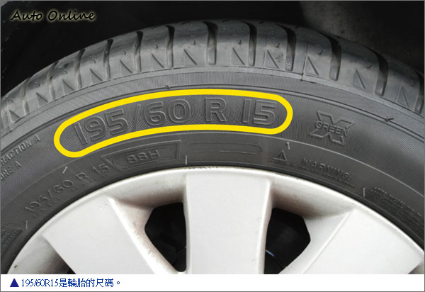 沒錯,換輪胎也是需要作功課的。不過在看完眾家輪胎的簡介後……你真的有看懂嗎?先來看看輪胎尺碼的標示,以照片上的尺碼為例195/60R15,195是胎面的寬度,單位是mm;60是輪胎胎壁的扁平比,單位則是百分比,圖示的60則表示是輪胎寬度的60%;R則代表著輪胎是採放射簾布層的結構,另外若是標示B的話,則表示這輪胎是採交叉簾布層的輪胎結構,不過這交叉簾布層結構已不再使用於市售的輪胎輪胎中了;最後一個數字15則是適合安裝輪圈的尺寸,其單位為英吋。
