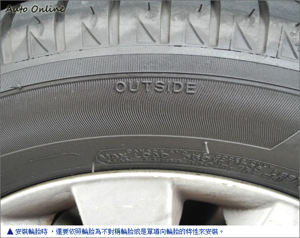 在瞭解正規的輪胎標示後,還有些標示攸關著則你我對輪胎的選擇,也是需要來瞭解一下。每一款輪胎各有其不同的輪胎特性,有些較為耐磨、有些則偏向抓地力的表現,但這要如何從輪胎上看出一二呢?翻轉一下輪胎,你將會看到Treadwear、Traction、Temperature三組數值,Treadwear表示耐磨係數,數字愈高表示愈耐磨;Traction表示輪胎的循跡抓地指數,A級代表最佳,B級、C級則遞減;Temperature則表示著輪胎的耐溫指數,同樣的也是A級為最佳,B級、C級遞減之。