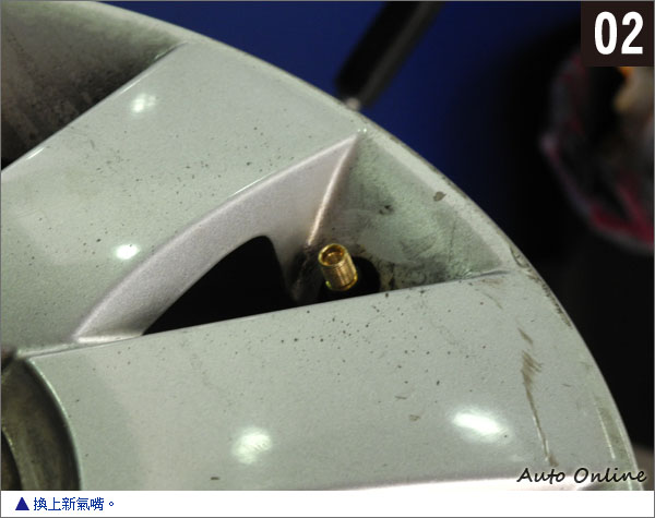 當選定輪胎後,第一個動作當然就是上頂高機拆下磨損即將報廢的舊輪胎,通常店家技師會在拆下舊輪胎胎皮的同時換上新的氣嘴,因氣嘴座的橡膠材質,也是有使用年限的問題,一併換掉氣嘴是比較正規的做法。