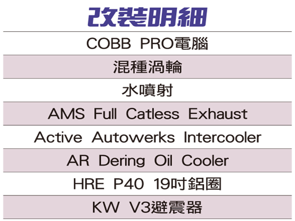 ![]() ▲ HRE P40 19吋鋁圈搭配前235/35R19、後275/30R19輪胎尺寸,提升動力後制動力就更為講究。N54B30原廠配置三菱重工出品的TD03渦輪機,以三缸推動一顆渦輪的作動方式,在引擎高達10.2:1的高壓縮比下,最大增壓值設定在0.6bar,保守的增壓值設定是考量到引擎的耐用度以及各個國家油品品質不一所做出的對策。改裝動力的第一步就是先將渦輪升級,黑陶選用國內渦輪套件來取代原廠渦輪,利用TD04 13T的進氣側搭配TD035的排氣側結合的混種渦輪,這樣的設定下有助於低轉時輕推渦輪,又能換到最大的進氣量。 ![]() ▲內裝並未安裝外加的監控儀錶,就連座椅都維持原廠並未更換桶型賽車椅。![]() ▲最大的改裝項目應該是中控台上的碳纖維飾板吧!