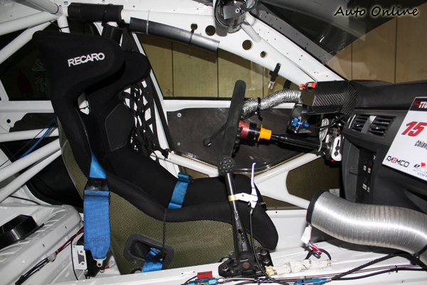![]() ▲冷氣以及音響面板被碳纖維飾板取代,上面有車輛電子配備的指示燈。內裝早已全部拆光,裝上符合FIA規格的防滾架,WTCC世界房車錦標賽規定,必須保留原車的中控台,所以車內還是看的見BMW 320i的中控台,不過只保留冷氣出風口以上的造型,冷氣以及音響面板被碳纖維飾板取代,上面有車輛電子配備的指示燈,告訴駕駛那些東西是被開啟,哪些是關閉的。 ![]() ▲大耳朵的RECARO賽車椅,將車手牢牢固定在椅子上,發生撞擊時能確保車手有完善安全保護。![]() ▲Sparco方向盤上有較為重要的控制開關,像是燈光、雨刷、無線電、玻璃加熱除霧的開關。![]() ▲除了車內的安全配備以外,車手安全人身部品攸關事故發生能否全身而退。