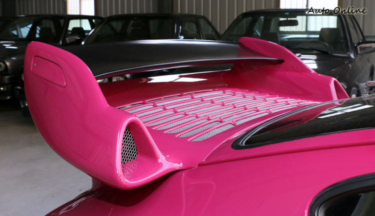 顏色搶眼的粉紅色保時捷964剛從日本運抵台灣,原隼國際的傅哥力邀我們前去採訪,不過車輛目前還未取得正式牌照,所以只能靜態拍攝以及車庫前方空地移移車。看到粉紅豹(我給它的稱號)的第一瞬間,如同之前採訪過的橘色RWB 993,被他非常誇張的前後輪弧給震撼,老保時捷居然可以如此美麗。拍照的同時,傅哥湊上來說,外觀與RWB有些類似,但是你可以發現鈑件固定方式差異很大。確實Sunburst 964誇張的外擴鈑件外部看不到任何鎖孔,就向原廠車輛出廠時所裝設。不過我覺得沒有螺絲鎖點雖然看起來簡潔,不過視覺上就沒有RWB來的有張力。
