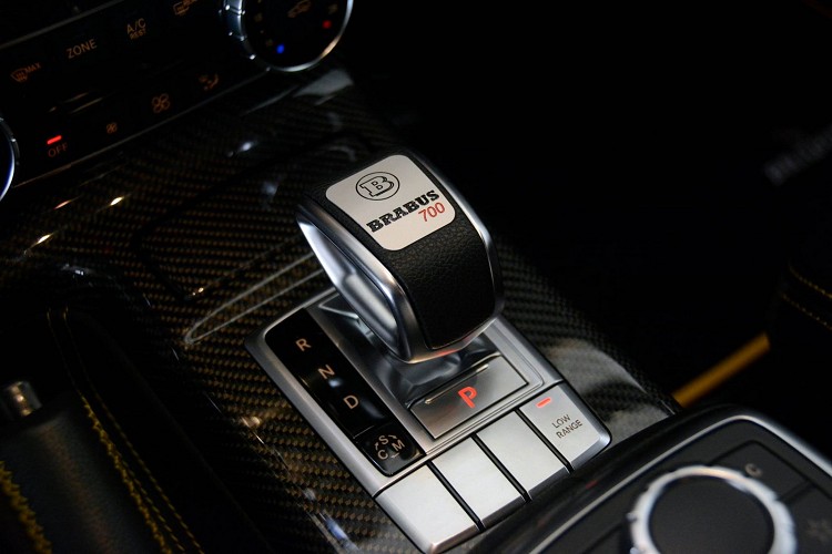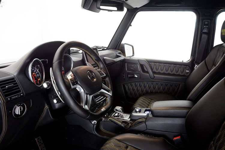內裝保留G63原有的樣貌,只針對皮革做更奢華的升級,主要色調與車身顏色黑、黃相同,利用高檔真皮與縫線加強車內奢華感。車內看的到許多BRABUS專屬銘牌與字樣,像是座椅頭枕、門飾板、門檻、踏板等,展現出與一般AMG G63的差異化。