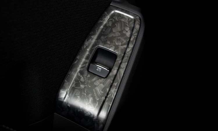 改變還不只如此,沿著車側兩邊,獨特且外擴的側裙好看又可減少阻力。鋁圈換上19吋的鍛造框,顏色則為保守高亮銀。車尾碳纖維後擾流可快速排出車底亂流,左右雙出排氣管氣勢驚人,最後則是後尾廂的大型GT尾翼,相當高調又保有該有的實質效益。