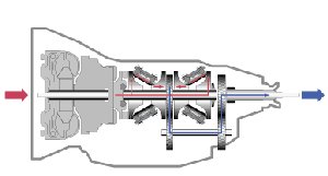![]() ▲紅色是動力進入的路線、而藍色則是動力輸出的路線。只不過經由這樣有志一同的展示我們就可以嗅到未來CVT變速箱將會引起的自排革命!如此一來,CVT變速箱所擁有的一檔到底、變檔平順、換檔不會有震動、效率較傳統自排變速箱高的等等優良特性,就更能被凸顯出來了;加上電子控制機構的搭配,不要說是六檔手自排了、要做到八檔、十檔都可以(當然、沒有此需要),這樣一來更是大大的增加了自排車的駕駛樂趣。這也將大大的擠壓傳統自排變速箱的市場、和手排變速箱的市場。