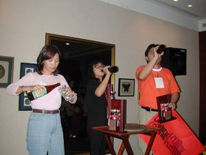 由於最後一天的晚會上同時舉辦RS路段的最後決賽∼現場即時問答活動,最高分可達200分,幾乎可說是勝負關鍵,使得晚會時大家都戰戰兢兢地,連喝酒的機會都很少,完全違背了南陽的傳統。不過念在本組得到了RS冠軍(每個人喝兩杯『潛水艇』:小杯高粱酒投入大杯啤酒)又得到SS競賽亞軍(每個人喝一罐台啤),酒也喝得夠過癮了,真是的,別組拿冠軍只需喝一杯,我們就得兩杯,太不公平了!不過南陽公關亮哥特別要我提醒大家,下回南陽再辦Rally時,可別以為酒攤會像這次那麼好過關,這次是因為大家拖太晚,時間不夠,下次晚會直接頒獎,而且增加獎項,加重『待遇』,大家走著瞧吧!