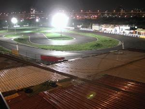 ![]() ▲夜晚的Gallop加上基隆河燈光點點的美麗夜景 跟上次介紹的極限賽道一樣,這也是可以跑Go Kart 100的賽道,也就是我們為什麼會瀏lash;在第二家來介紹的原因。全長680公尺,擁有最長的135公尺直線道,100cc的車可以輕易的跑到110km/h以上,緊接著就會看到鐵絲網牆,通常是要煞車的,不過也有不煞車的,這就看個人造化了。