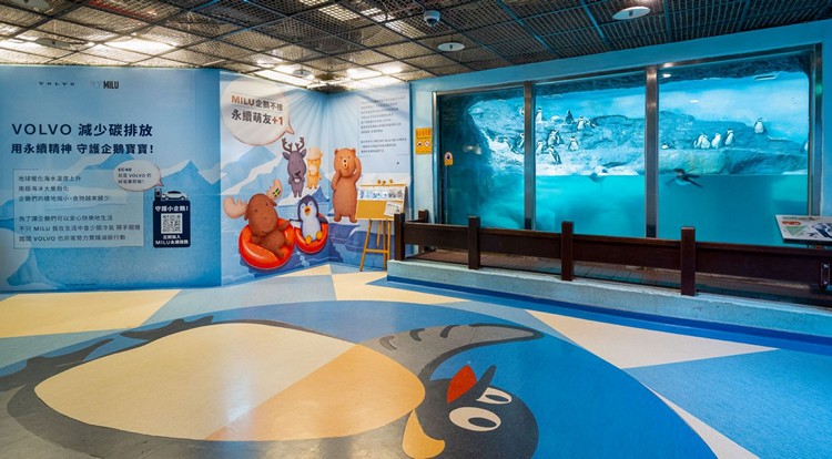 加入 MILU 極圈新冒險 數位永續挑戰抽好禮 趁著年末佳節前夕,VOLVO 於臺北市立動物園企鵝館內及周邊,以品牌安全大使 MILU 與他的好友們為主題,精心打造可愛童趣的永續互動展覽空間,館外可以看見 MILU 與好友們的可愛造型立牌,館內設置萌度滿點永續主題壁貼與掛旗,邀請大朋友小朋友一窺與國王企鵝有關的趣味永續知識。