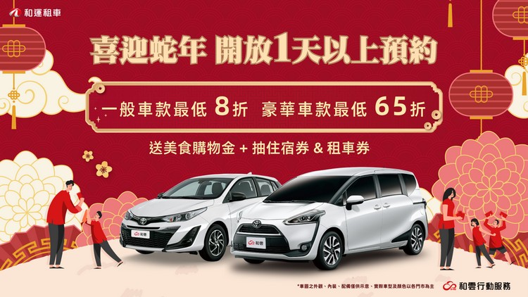 和運門市租車春節方案65折起 ,再抽租車抵用券等超值好禮