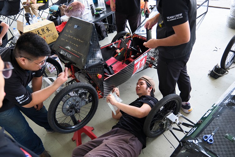 FST今年首度舉辦技術展演賽,4所學校車隊分兩組進行耐久賽測試,車隊需在卡丁賽道上持續行駛15分鐘才視為完賽,挑戰車輛的可靠性、耐久性及車手的駕駛技術。比起群眾想像中的賽車競賽,FST更像是以車子為載體的成果展,除了耐久賽、計時賽、八字環繞等賽制,更有靜態評分、商業報告、成果報告等專項評估,讓造車不是挑戰單一標準速度,還需符合國際規則與安全規範、電池耐久度與地形適應性等功能,及具備完整的商業模型。因此各學生賽車隊都將社團當作公司運營,工科、商科等多元專才也能在以造車夢凝聚彼此的團體中,找到自己的角色。