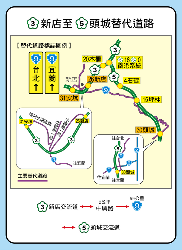 替代道路破解塞車路段![]() ▲替代道路均設有螢光黃綠底搭配黑字的路標相當醒目。台灣本來就地小車多,過年過節不想遭遇塞車,不是靠運氣就是靠經驗,自認運氣普通的話,那就透過替代道路避開眾多的車流吧,但是替代道路究竟有那些呢?就讓小編來告訴大家。