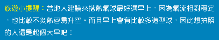 必去景點:鹿野熱氣球![]() ▲到鹿野高台坐熱氣球當地人建議選擇早上時段,較不炎熱而且氣流比較穩定。今年鹿野熱氣球新增自由飛行程,每人8000。不過名額有限,很多人都是凌晨三點就先去排隊,不過如前文所提,受限氣流因此有可能隨時停飛,也有可能飛一下就得降落,不保證飛行時間。當然你也可以選擇坐在草坪上與熱氣球合照。官方表示熱氣球分造型球與飛行球,造型球如憤怒鳥等會依時間更替,因此不同時候去看到的熱汽球造型會不一樣喔。