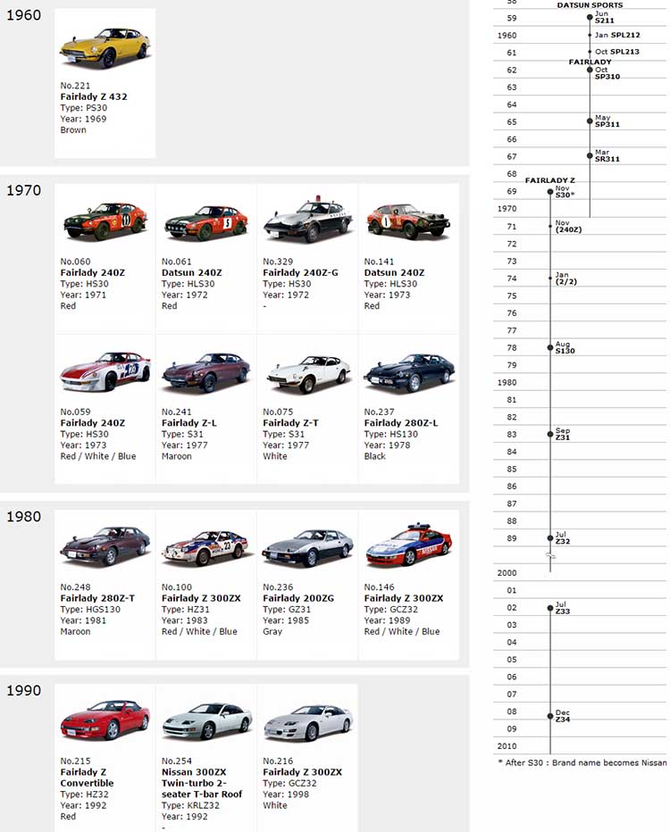 Z之傳奇![]() 二次大戰日本戰敗後,國內產業重新制定出口導向的策略,同時引進最新技術並調整產業結構。而美國在此時也適時伸手援助扶植日本經濟,自日本進口大量的產品,而汽車也開始正式進入美國土地。然而與生產經驗豐富的美國車,以及昂貴的歐洲車相比。當年的日本車品質不佳、機械設計不良、耐用性差、造型平庸,更常傳出無法適應美國氣候與用車習慣,因而故障是家常便飯,也等同於粗製濫造的代名詞,日本車廠根本很難在美國生存。 ![]() ▲Z系列後來的改款與衍生車型同樣受到歡迎,不過經典程度仍不如最原始的車型。