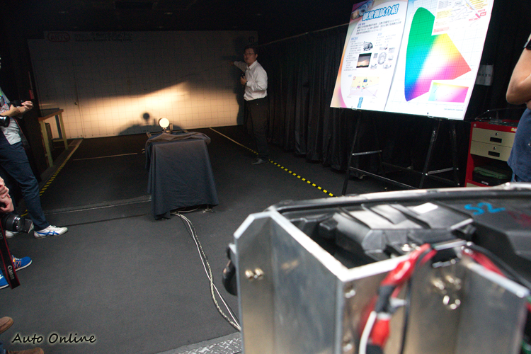 ▲儀器進行被頭燈照射區域的亮度比例測量。
