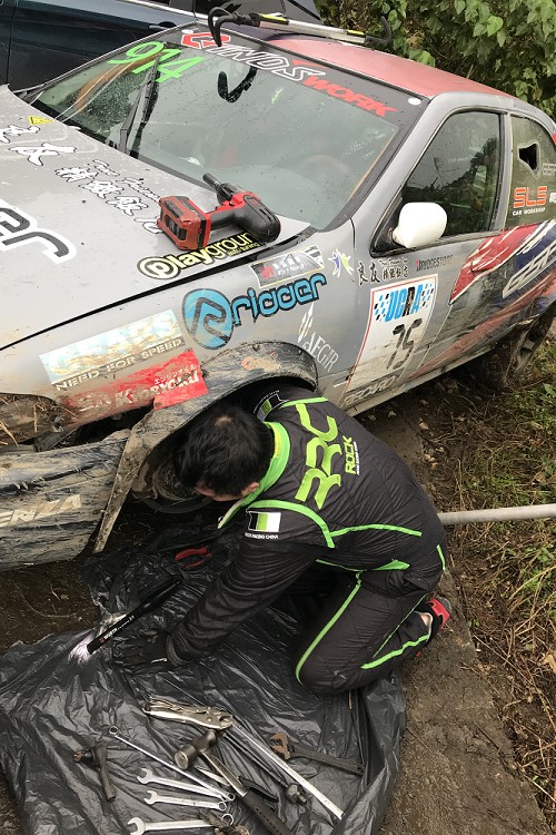 ▲第二天早上嘗試繼續比賽,但發現前底盤懸吊還有別處有傷到,車輛狀態很難操控,忍痛就於SS3畫下本站句點。