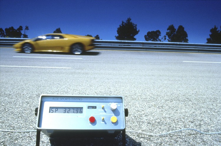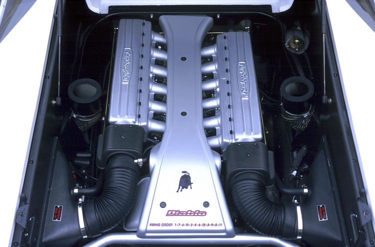 初代Diablo搭載5.7升V12引擎,輸出492匹馬力,0-100 km/h加速約4.5秒,最高時速337 km/h。