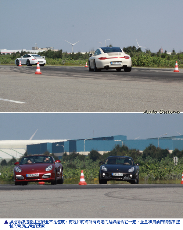 試駕過程中可以體驗到Porsche不同車系的特性,有四驅與後驅的差別,有大馬力與小馬力的不同,其中性能最強悍的911 Carrera GTS是學員爭相試駕車款,最大馬力408hp,0-100km/h只要4.6秒,每一次踩油門都是一種享受。