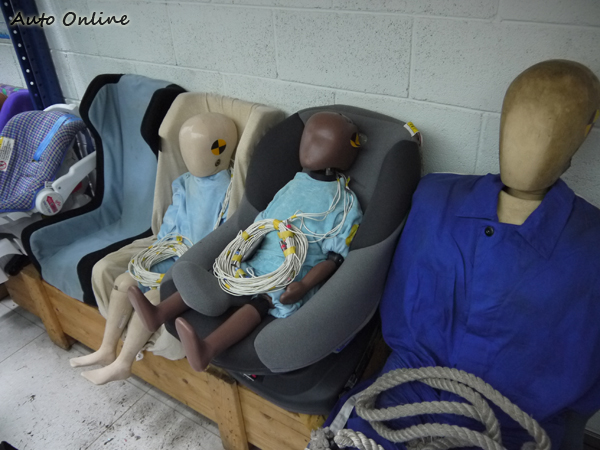 安全座椅學問大![]() ▲三點式安全帶的腹帶主要是固定骨盆避免車禍時造成滑動,因此不要繫在肚子上喔。除了安全帶之外,保障幼童安全的安全座椅檢測也是我們此行的另一項參訪重點。有些家長認為小朋友體型成長迅速,買安全座椅使用沒多久又得換新的,負擔實在太大。有很多家長則是認為幼兒給親人坐後座用抱的比較不會哭鬧,但事實上這些行為其實都是拿幼兒安全冒險。 ![]() ▲對於孕婦來說正確的配帶安全帶尤其重要,除了不要壓迫頸部外,腹帶以跨過骨盆為主,不需要繫太高。![]() ▲在安全測試扮演重要角色的測試假人,光空體就要價上百萬,若加上電線等感應器一具都要300萬左右。![]() ▲幼兒也相關的假人可以試驗。由於要價不斐因此ARTC也表示當累積的研究數據夠多也可以替外國研究機構進行測試,賺點外匯。