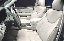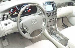 ![]() ▲LS430另一個受到強調的改進點在於車室空間與內裝質感的全面提昇。LS430在車身尺碼方面並沒有較LS400增加,但是為了擴充車室內的乘坐空間,車廠將LS430的軸距拉長了3吋、達到115.2吋(2926mm)的長度。TOYOTA很一針見血地指出,雖然鎖定對手的MERCEDES S-Class(短軸標準版)在車身尺碼上較大,但是LS430卻有較佳的乘客腿部與頭部空間,以及較大的車室容積(2982公升對S-Class的2973公升)與行李廂容積(456公升對S-Class的436公升)。除了乘坐空間的提昇外,這一次LS430車室內最大的改變在於全面提昇的內裝質感與配備等級,TOYOTA特別註明,車廠當初在開發新車款的時候,甚至派了他們的工程師與設計師參觀考察了連lash;多其他非汽車的產業在製作工藝產品的過程,例如五星級旅館總統套房的裝潢,私人噴射客機的機內裝設,乃至於名牌珠寶與吉他製作的經過。不用說LS400原本稍嫌寒酸的木料與真皮材質在LS430上已獲得重大的改善,另外一個攸關乘坐舒適表現的,則是整合了車外溫度與陽光照射角度機能的左右、前後獨立式恆溫空調系統。LS430的駕駛座配備有雙腰靠調整與可調座墊長度/腿部支撐叫lash;能,而乘客座則配備有爆發力可變的SRS氣囊,以及前後座都有的側撞防護氣墊。