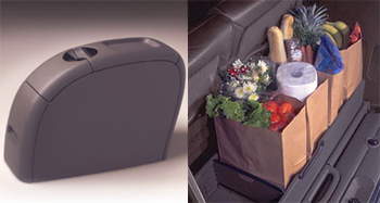 ![]() ▲新車款上配有多項業界首見的新奇設備,例如可移動的中控台及稱為『Versa-Bin』的行李廂多叫lash;能整理盒。在Voyager/Caravan/Town & Country的車內也有些原創性的有趣設計,例如全新設計的可移動式中控台就是一例。這個內建有行動電話座、12V插頭、地圖/面紙/雜物盒和照明燈等叫lash;能的中控台,可以選擇性地裝置在第一排或第二排座位的中央,當然如果車主想將它整個移除、或增購一個讓前兩排座位同時都有中控台也是可能的選項之一。另外,在新車款的尾廂部份,車廠設計了一個命名為『Versa-Bin』的彈出式多叫lash;能整理箱,採硬塑膠材質的整理箱平常是平躺在尾廂底部,在需要時才打開、最多可以容納得下六個大型的購物帶,除此之外Versa-Bin並不是只能放置在尾廂底部,車主也可選擇性地將它裝置在比較高的位置上。在新車款上第三排座位新增了50/50分離折疊/拆卸的叫lash;能,提昇了車內空間的利用變化程度,除此之外,新車款上也新增了例如三區分離恆溫空調、吸附在車頂上的DVD放映機等選配項目。為了讓駕駛人調出更適合的坐姿,在未來量產的過程中將會追加油門/煞車踏板高度可調的叫lash;能到新車上。
