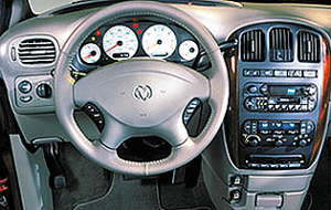 ![]() ▲三車款中較為運動化的DODGE Caravan之儀表設計。Voyager/Caravan/Town & Country以前輪驅動為基礎的底盤在改款的過程中也接受了相當程度的改良,雖然在基本的設計結構上仍然是前麥花臣支柱式/圈簧懸吊,後懸則是考量到車輛荷重時的高度平衡問題,仍然採用浮動固軸搭配葉片彈簧的簡單構造(畢竟對Minivan這種車種來說荷重載物是經常會遇見的任務),但是工程師們將後懸結構的重量削減了15%,仔細針對避震阻尼做更佳的設定,修改轉向齒比以成就更佳的轉向反應,並且在德國的測試道上反覆測試修正,相信新車款在操控、乘坐性上將會有較現行車款優良連lash;多的表現。除了底盤操控方面的表現外,新車在開發過程中另外一個重視之處是安全性方面的要求,由於上一代的Voyager在歐洲的NCAP車頭偏向正撞(Offset Frontal Impact)的撞擊測試項目中表現不佳,因此DC需要在新車款上做出徹頭徹尾的改善以求洗刷惡名。新車款在車體剛性上提昇了20%,並且配備有側撞氣囊。另外,為了改善上一代Voyager在荷重時煞車力不足的問題,DC將原本的煞車軟管全部汰換成金屬管,在承受高壓時不會因為管路本身的彈性而造成煞車壓力的損失。