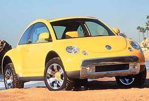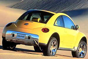 ![]() ▲VW New Beetle Dune與汽車製造之都底特律不同的是,加州是北美汽車業的設計之都,因此同樣是美國本土的車展,底特律著重在汽車產業的推廣與銷售等議題,但洛杉磯車展卻顯得比較意念化。在洛杉磯車展中,VW展出了一款以New Beetle為基礎所開發出來的混種越野概念車,然而,與其他後面拖著貨斗的半SUV車種不同的是,這是一款將New Beetle『沙灘車』化的作品,正好與加州充滿著陽光的海岸風情互相輝映,也因此VW將其命名為New Beetle『Dune』(沙丘)。