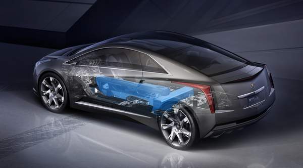 ![]() Converj搭載的Voltec電力驅動系統,是由一個16千瓦輸出T形鋰電池、電子驅動單元與一具四缸引擎發電機所組成。其中鋰電池是整合於車架之內,不佔用車室空間,並且利用插電方式來為電池充電,使用240V插座充電可在三小時內充飽電池(120V插座則為八小時)。而可使用多種燃料的四缸引擎則單純作為發電機之用,負責提供電力給系統來驅動車輛。Voltec系統最大可輸出120kW功率與370Nm扭力,極速則可達到160km/h。
