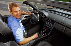 ![]() ▲為了彰顯新車的優秀,MERCEDES特地找來他們的房車賽王牌車手、DTM 2000的年度冠軍Bernd Schneider進行新車的試駕講評。當然,除了內在的改變外,透過外觀的改變以彰顯高性能版車型與一般SLK的不同,也是SLK 32 AMG的一大特色。包括前後氣壩,側裙與車尾行李箱製lash;上那鴨尾狀的擾流片在內之一系列空氣動力套件除了帶給這車款更為囂張霸氣的印象外,實際上也有大幅降低後軸空氣浮力的作用,其幅度甚至高達50%的程度。至於在SLK 32 AMG的車內,可以見到連lash;多AMG標準的配備項目,包括雙色調處理的兩張跑車式座椅與車門內飾板,方向盤與排檔桿頭,特別要注意的是為了配合性能的大幅提昇,SLK 32 AMG的儀表板極速刻度標示到300km/h的範圍,而每個刻度代表30km/h而非以往的20km/h是首次見到的新作法。